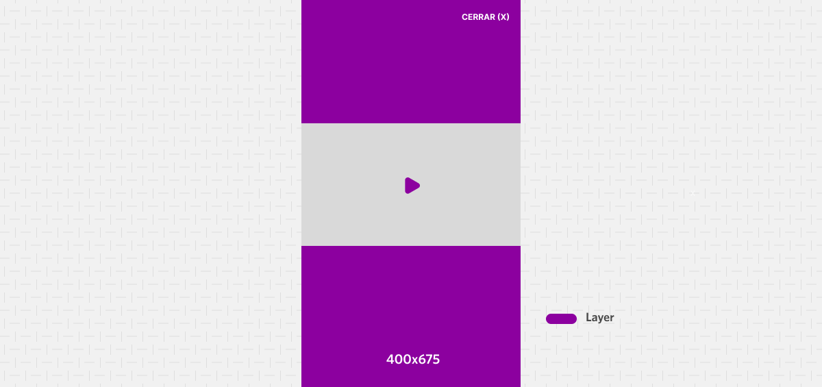 Layer: 400×675 Que cubra toda la pantalla, con botón de cierre.